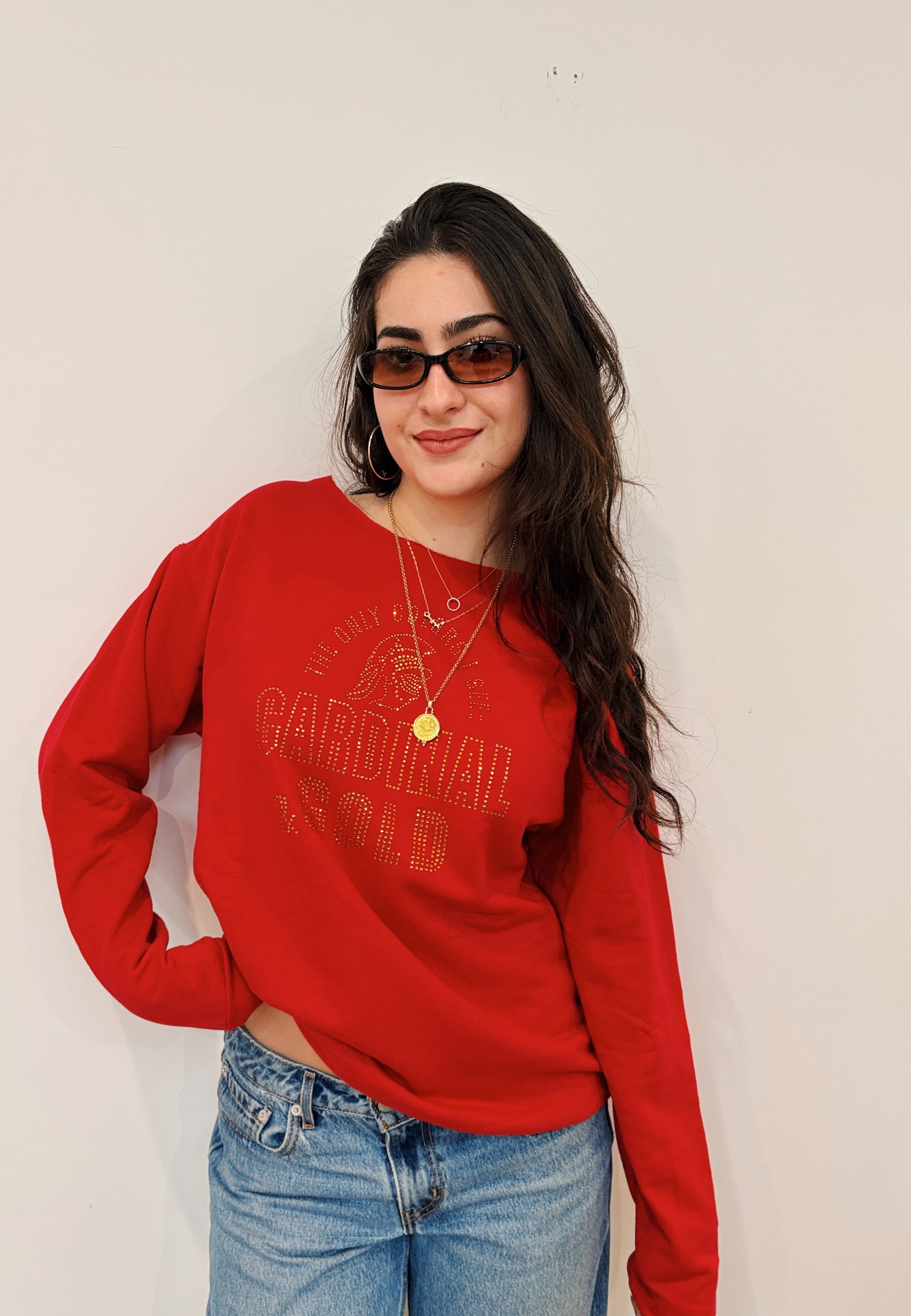 Simple, flattering, and full of Trojan pride. The Cardinal & Gold Crew is a red off-the-shoulder crewneck featuring the bold phrase “the only colors I see: Cardinal & Gold.” Cozy yet statement-making, it’s perfect for game days, colder tailgates, or repping USC in style.