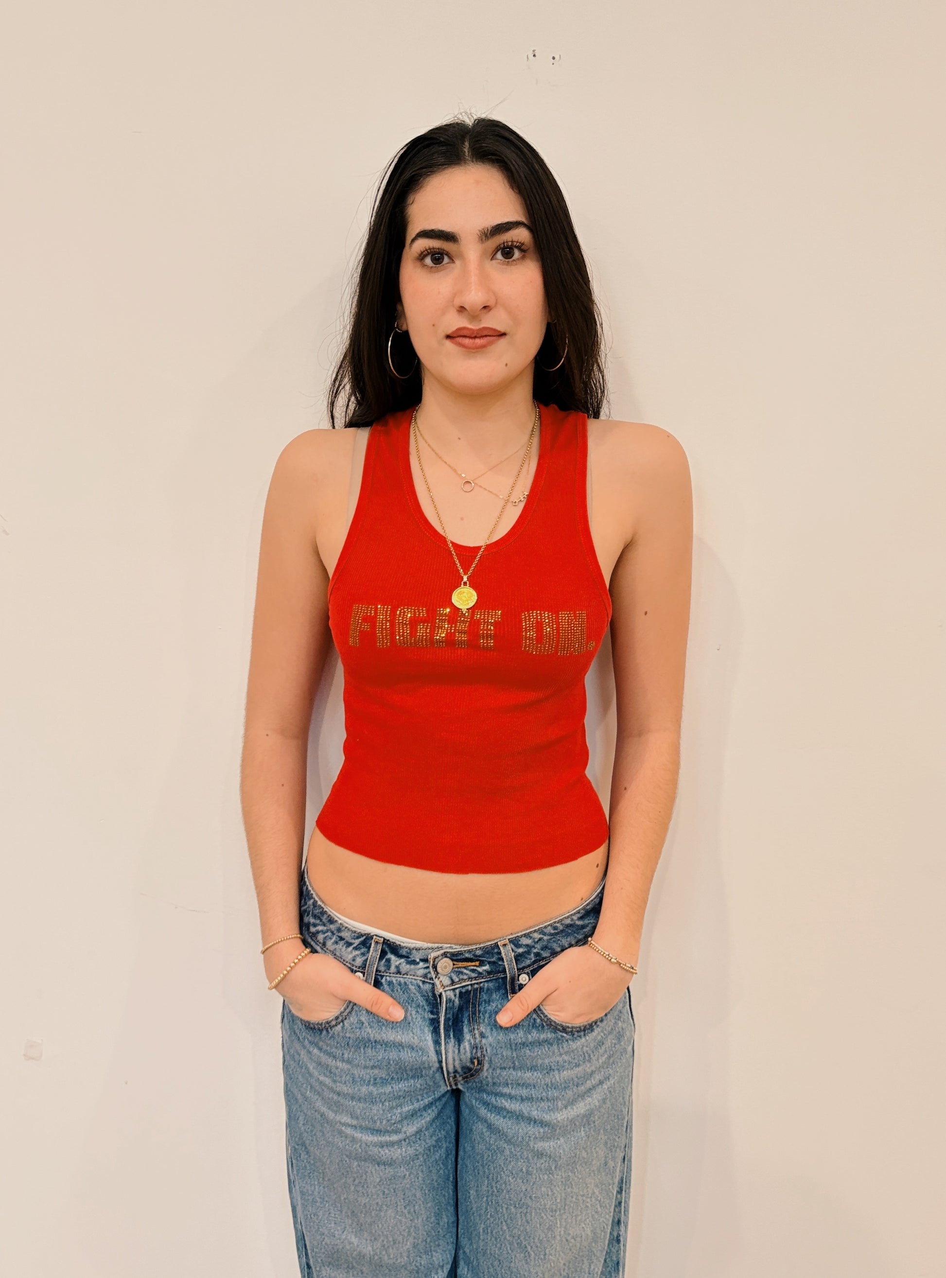 Simple, flattering, and full of school spirit. The Fight On Tank is a red ribbed tank featuring “FIGHT ON” in bold across the front. Comfortable, easy to style, and made to stand out, it’s the perfect go-to for game days, tailgates, or class.