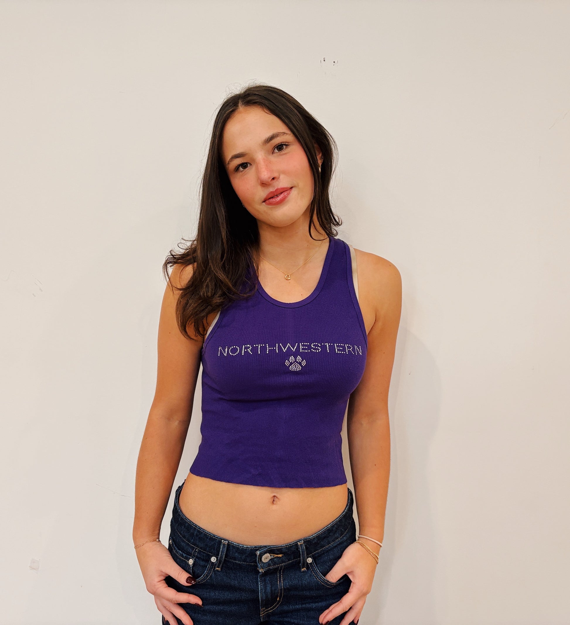 Simple, flattering, and full of Wildcat pride. The NU Kitty Tank is a purple ribbed tank featuring Northwestern in script with a mini paw print detail. Clean, cute, and easy to style, it’s the perfect staple for game days, tailgates, or even class.